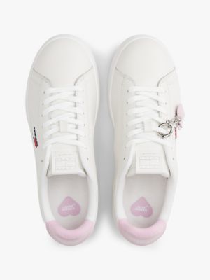 These leather court trainers have been given a romantic twist, showcasing a heart charm with a delicate star and matching insock logo.