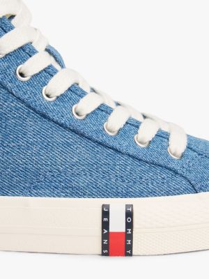 Step back in time in these mid-top trainers, crafted from denim for a retro look, complete with a statement branded sole.
