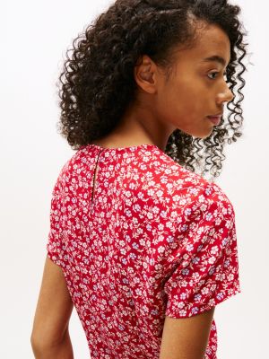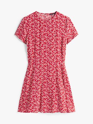 This short-sleeved mini dress features delicate feminine details, like the buttoned keyhole closure on the back and flowing skirt.