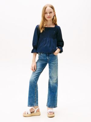 Enhance sunny-day looks with this pure cotton blouse, featuring pretty pintuck stitching and broderie anglaise trims on the long sleeves.