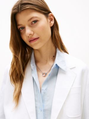 Complete an evening outfit with this circle pendant necklace, crafted from stainless steel and elevated with enamel signature detailing.