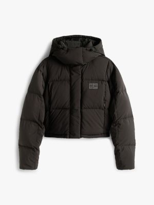 Get set for snowy days in this down-filled puffer jacket, made to a cool cropped fit with a colour-pop Tommy badge.