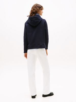 Master the art of laid-back style with this hoody, crafted from cotton-rich fabric and stamped with the iconic Tommy Hilfiger logo.