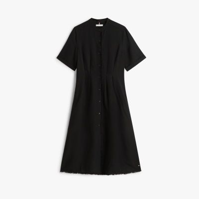 Frayed Linen Blend Midi Shirt Dress