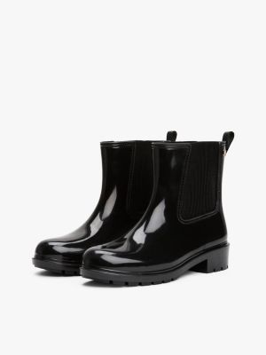 These ankle-high rain boots deliver style and practicality with their luxe glossy finish and grippy cleated rubber soles.