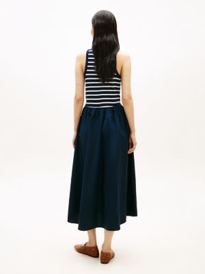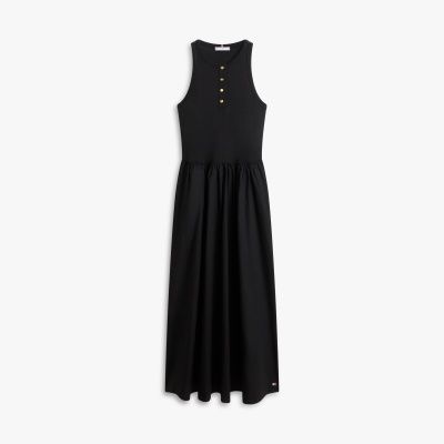 This maxi dress is adorned with luxe gold-tone buttons and crafted from ribbed fabric and silky-finish cotton poplin for a textural contrast.