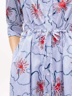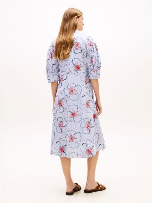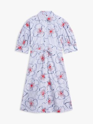 Puffed half sleeves and a waist-cinching tie belt give this midi-length pure cotton poplin shirt dress a figure-flattering shape.
