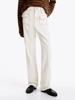 These jeans stand out for their retro authenticity, thanks to the high-rise, bootcut silhouette cut from rigid denim with contrast stitching.