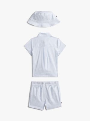 This charming set makes a sweet gift for the little one in your life, featuring a matching hat, shirt and shorts.