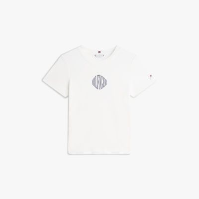 This crew-neck T-shirt imbues a sporty aesthetic with its varsity-inspired logo, while a silky finish gives it a luxurious touch.