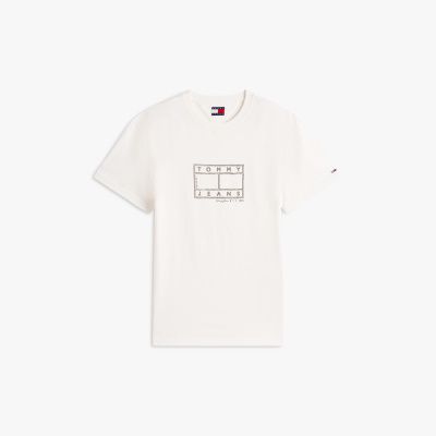 This pure cotton jersey T-shirt features a bold logo with an irregular inked appearance, creating a stamped-on effect.