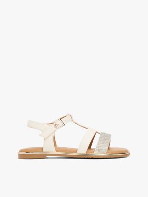 Prepare to dazzle at parties in this sparkling pair of sandals, enhanced with shimmering metallic accents and toe straps.