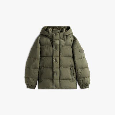 Keep the cold out on frosty days with this classic puffer jacket, elevated with mixed texture panels and refined Hilfiger monotype branding.