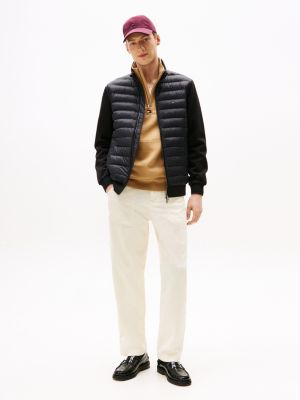 This zip-thru jacket expertly combines a quilted front with an intechno knit back and sleeves, providing unique style enhanced by signature tipping.