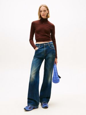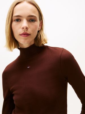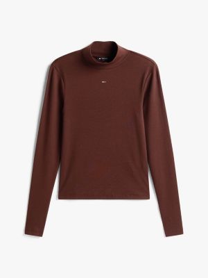 This long-sleeved top is made from stretch cotton with a tactile ribbed finish and features a cosy mock neck.