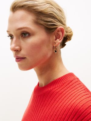 Make a statement in these gold-plated hoop earrings adorned with semi-precious onyx beads and featuring subtle logo debossing.