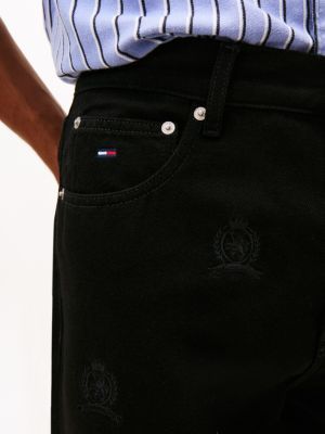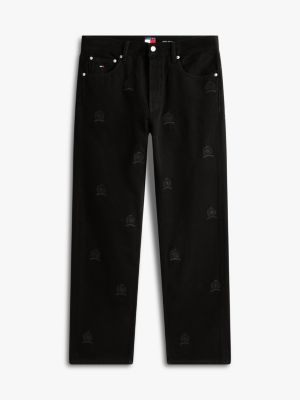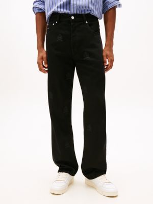 These jeans are cut with a classic straight leg and feature all-over tonal crest embroidery for a statement look.