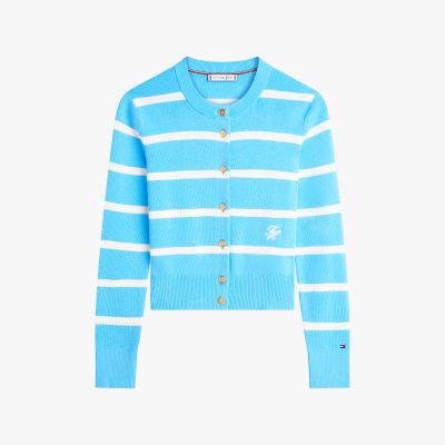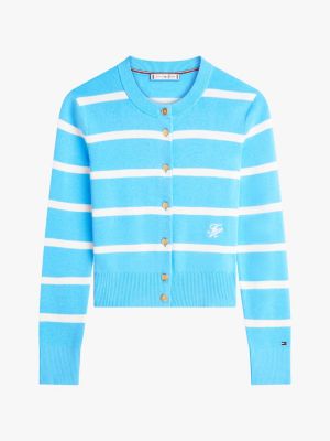 Introduce premium knitwear to your collection with this embroidered cardigan, produced from pure combed cotton and finished with embossed gold-tone buttons.