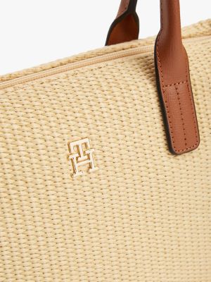 With its raffia finish and removable webbing crossbody strap, this tote bag will complete your look with stylish texture.