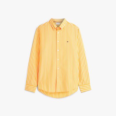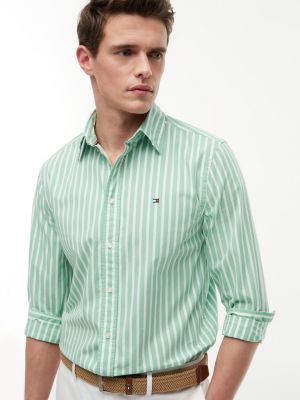 This peached cotton poplin shirt adds a refined edge to everyday looks with its stylish stripes and flexible feel.