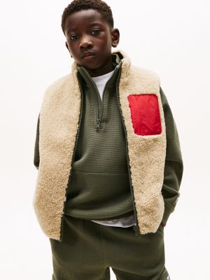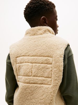 This fun, reversible gilet offers two looks in one – a fluffy teddy texture on one side and sleek onion-quilted polyester reverse.