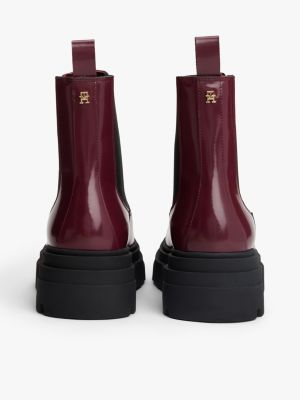 These Chelsea boots are crafted from shiny leather and are accented with TH monogram plaque detailing for a luxe finish.