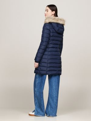 Stay snug on blustery days with this down-filled puffer coat, featuring a shiny finish and a faux fur trim on the hood.