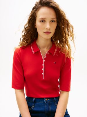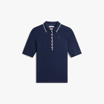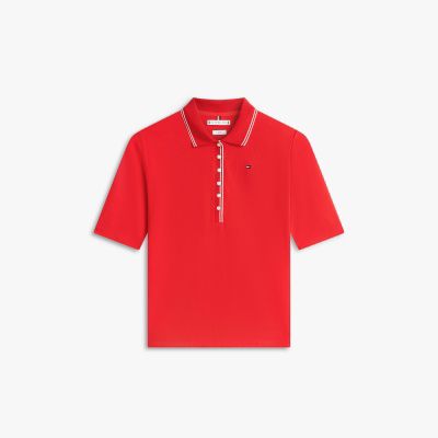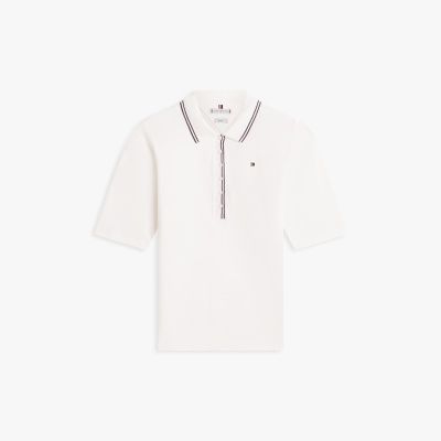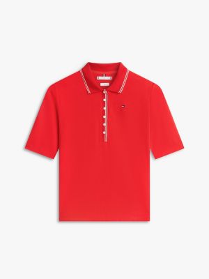 This slim polo shirt with smart half-length sleeves delivers classic sporting codes with its tipped detailing and textured stretch cotton-blend pique fabric.