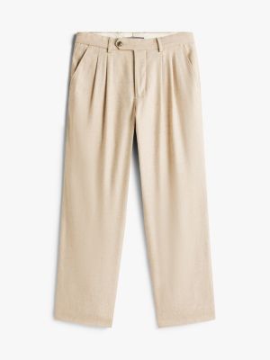 These refined flannel trousers are crafted from a wool-rich blend to a relaxed silhouette with sharp pleats front and back.