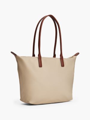 This tote bag with contrast top handles combines ample space with a sleek look and heritage-inspired details, making it an ultra-versatile piece.