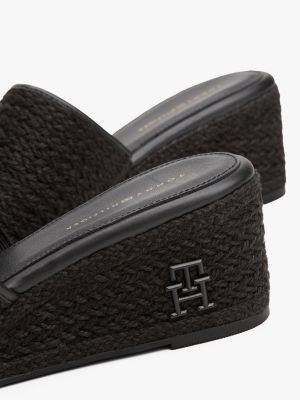 Complete a sunny-day ensemble by slipping on these linen sandals with rope-covered wedge heels and a TH monogram plaque on the side.