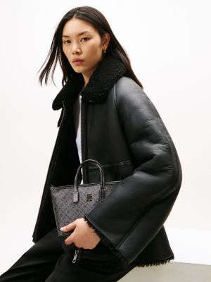 For sophisticated, eye-catching style that goes with everything, choose this compact tote bag with a tonal textured print and detachable crossbody strap.