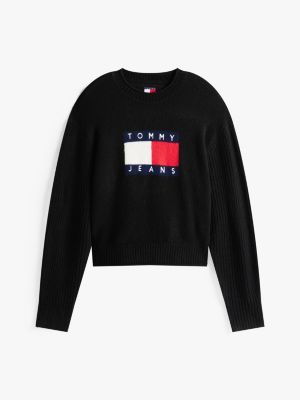Bring statement style to casual outfits with this relaxed-fit mélange jumper, featuring a bold Tommy flag on the front.