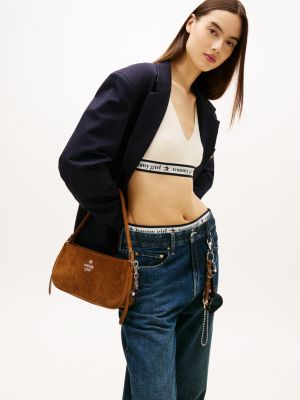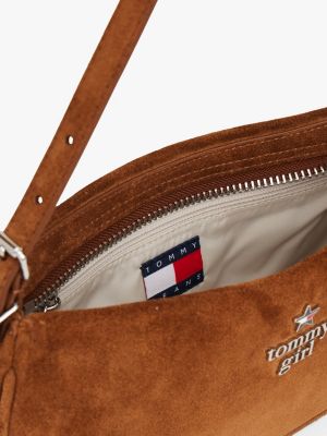 Tommy Girl Logo Suede Shoulder Bag