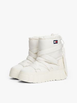 Be ready for the slopes with these statement hybrid snow boots, featuring striking crossover straps and chunky cleated soles.