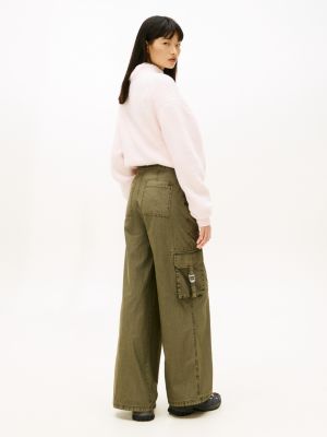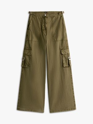 These twill cargo trousers offer relaxed vibes with their wide-leg design, while multiple pockets and waist tabs create a distinct utility look.
