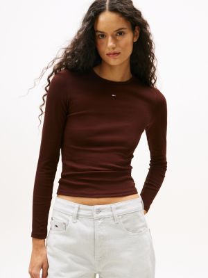 Find your perfect fit with our range of Tommy Hilfiger t-shirts for women. Our selection of t-shirts are crafted in pure cotton and lightweight jersey to keep you cool and comfortable, while fresh cuts and colours embrace our signature East Coast cool. Our versatile collection of women's long sleeve t-shirts can be dressed up with a pair of high heel boots or dressed down with a pair of comfortable chunky trainers, allowing you to curate an outfit suited to your mood. Whether you are looking for a timeless women's white t-shirt to match a pair of inky denim jeans, a varsity t-shirt to wear with easy-going sweatpants, or a relaxed women's oversized t-shirt with a tailored-meets-casual pair of slim-fit trousers and city trainers to match, there’s a women's Tommy Hilfiger t-shirt to complete your wardrobe. Make a statement in our printed t-shirts and slogan t-shirts or embrace classic colours for an everyday laid-back look. With this season’s latest designs of t-shirts for women covered, finding your perfect match has never been so seamless.